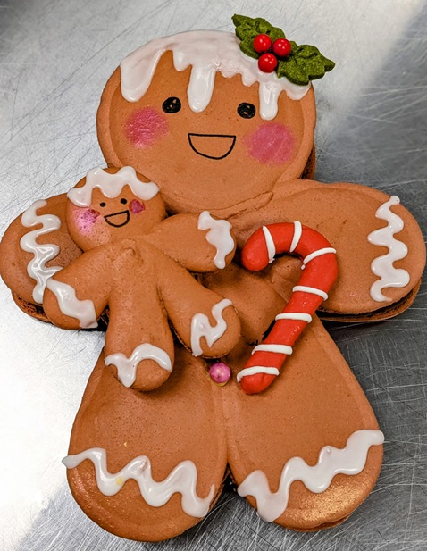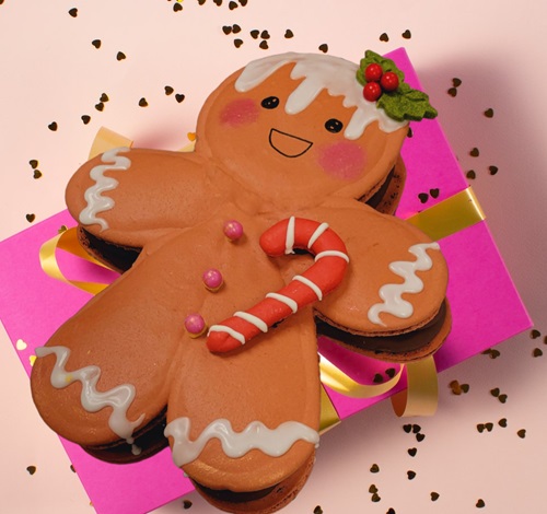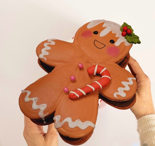 Gingerbread man shaped Macaron cake filled with cookies & cream flavored cream and vanilla cake. A perfect gift and a center piece of your Christmas eve