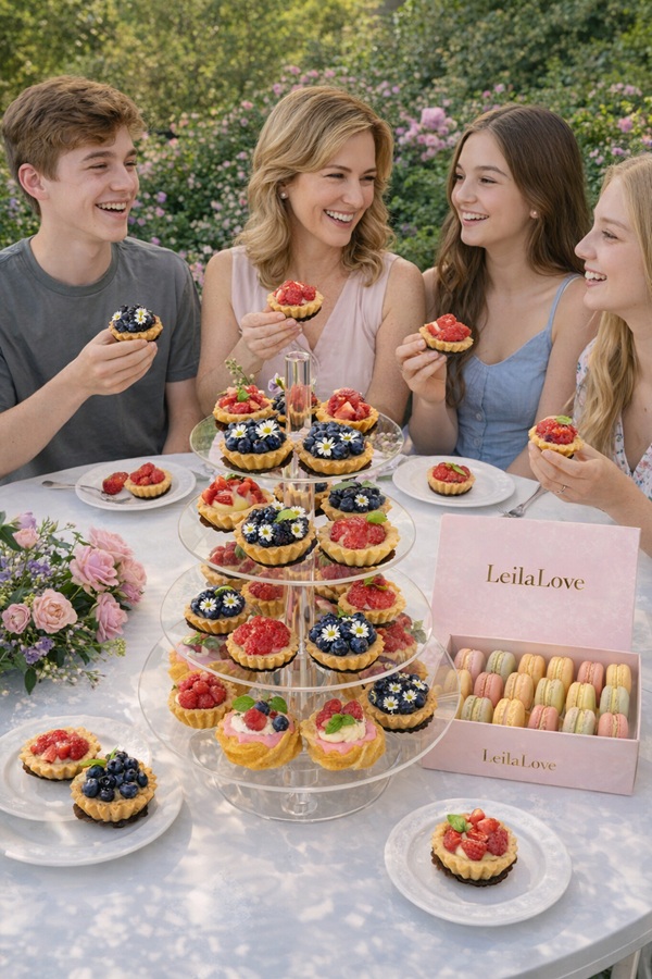 Crisp, delicate, and irresistibly photogenic, these mini fruit tartlets are crafted in true LeilaLove style. Each bite begins with a buttery, crispy tart shell, filled with smooth vanilla pastry cream, then crowned with a vibrant assortment of fresh raspberries, strawberries, blueberries, and blackberries.