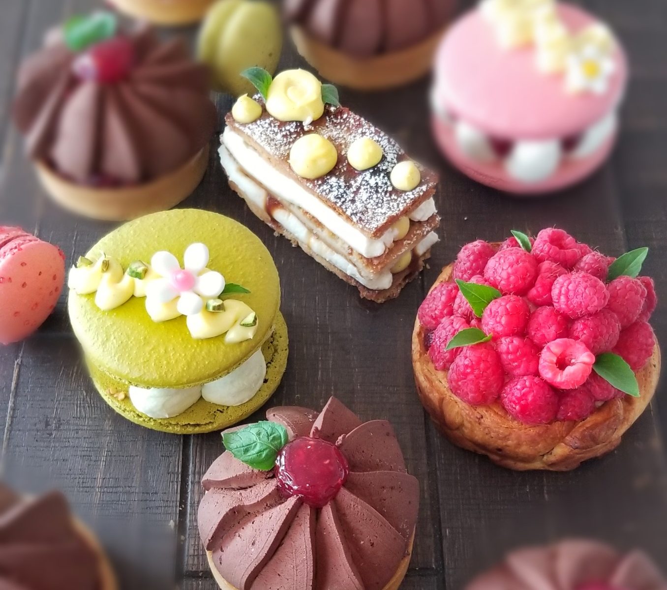 This classy Delicious dessert includes: Croissant tart , chocolate breton , Napoleon and our famous Macaron cake in variety of color and flavor