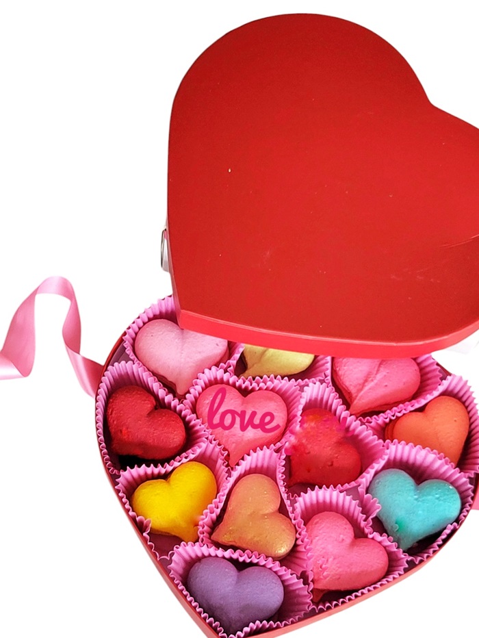 12 heart macarons in a beautiful heart box