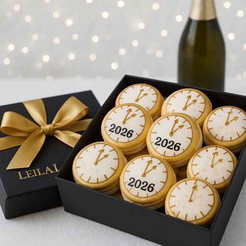 9 delicous shampagn flavord macarons in a classy black gift box .