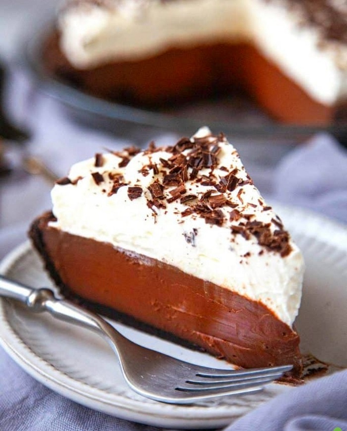 Decedent creamy and chocolaty Belgium chocolate on chocolate crust and vanilla bean cream Chantilly