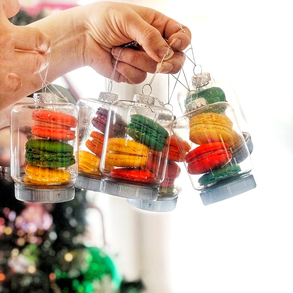 6 pack ornaments – each contains 3 delicious Macarons that can be hanged on your tree