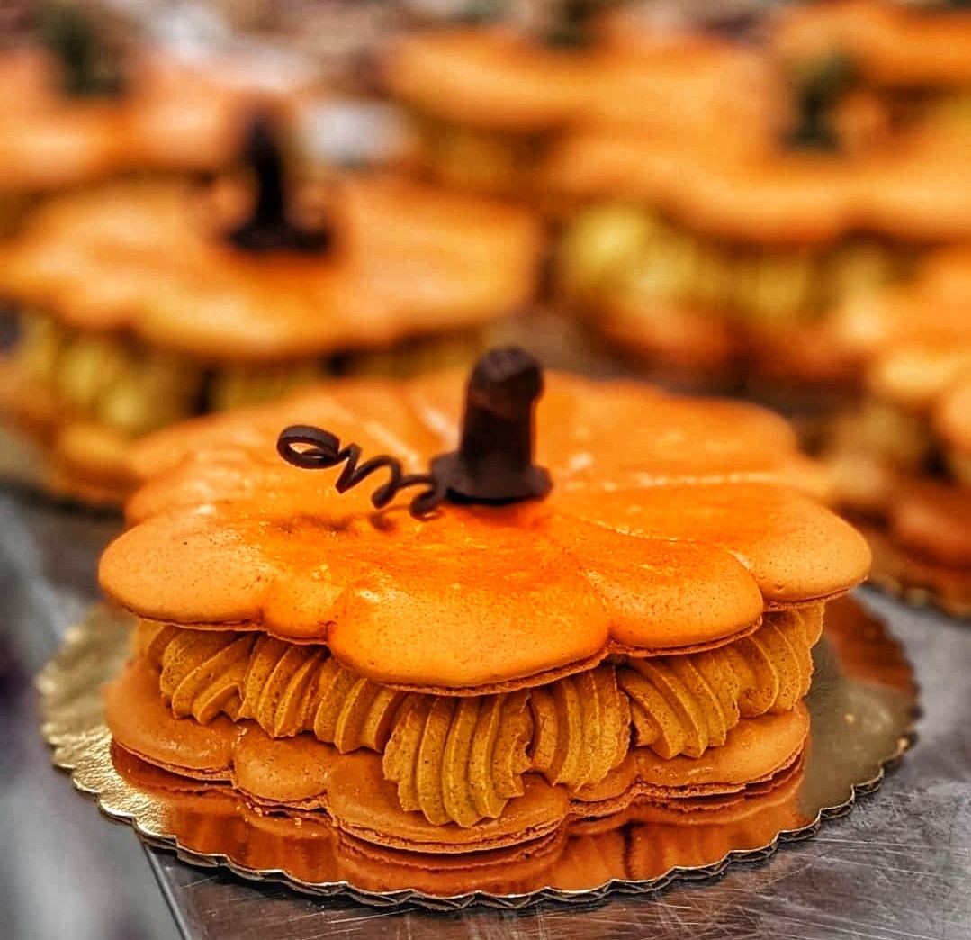 Pumpkin shaped Belgian chocolate mousse cream perfect for chocolate lovers serves 8 to 12 people